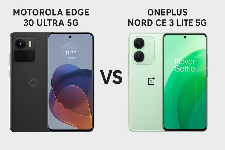 Motorola Edge 30 Ultra 5G vs OnePlus Nord CE 3 Lite 5G highlights the difference between a true flagship and a value-focused 5G smartphone. The Edge 30 Ultra offers top-tier performance, a 200MP camera, and ultra-fast charging, while the Nord CE 3 Lite targets everyday users with reliable performance, good battery life, and a more affordable price. This comparison helps buyers choose based on budget, usage, and feature priorities.